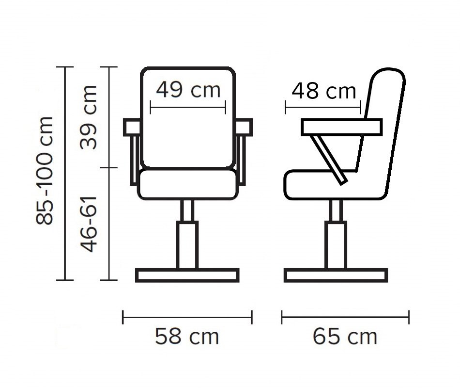 Zithoogte 46-61 cm, zitbreedte 49 cm, zitdiepte 48 cm