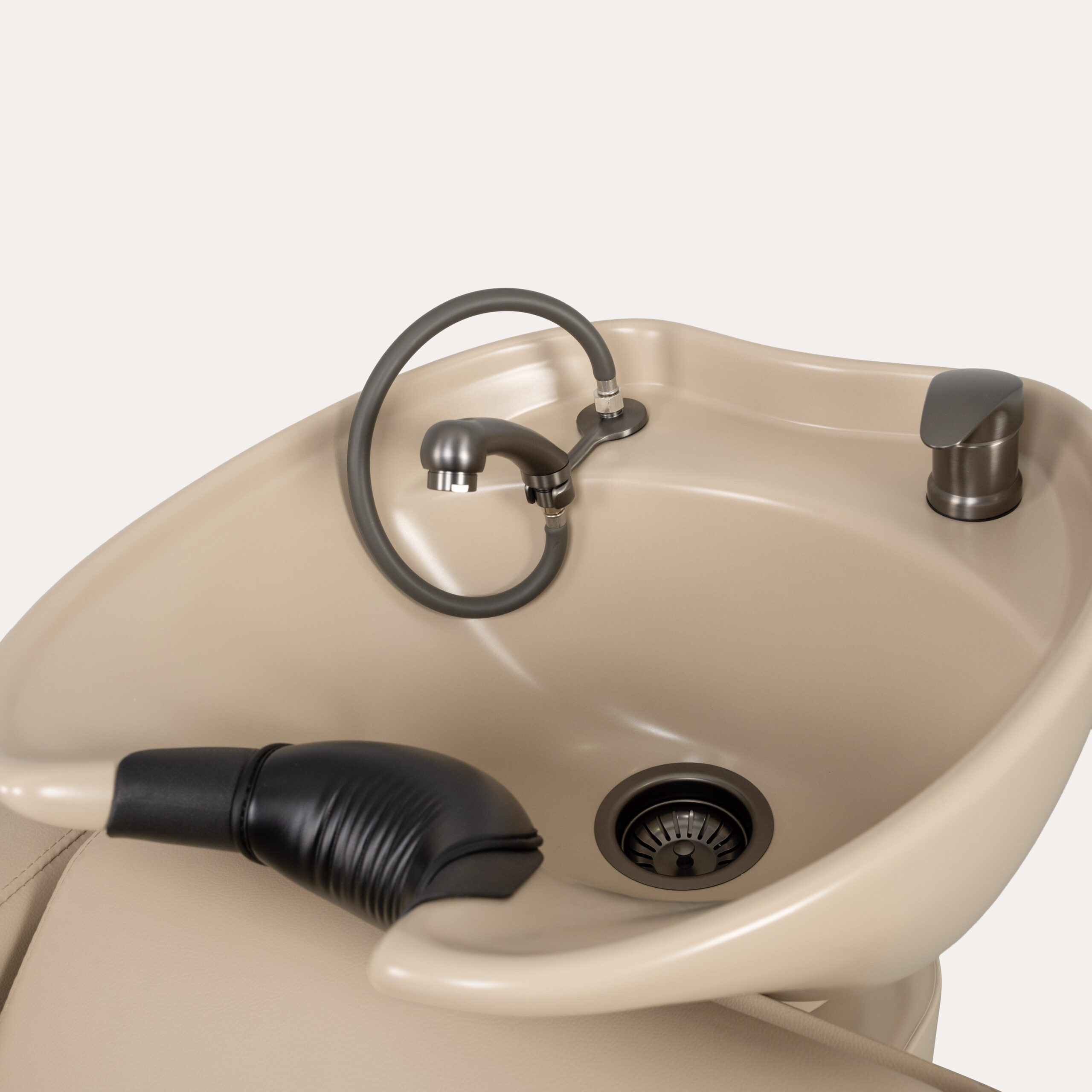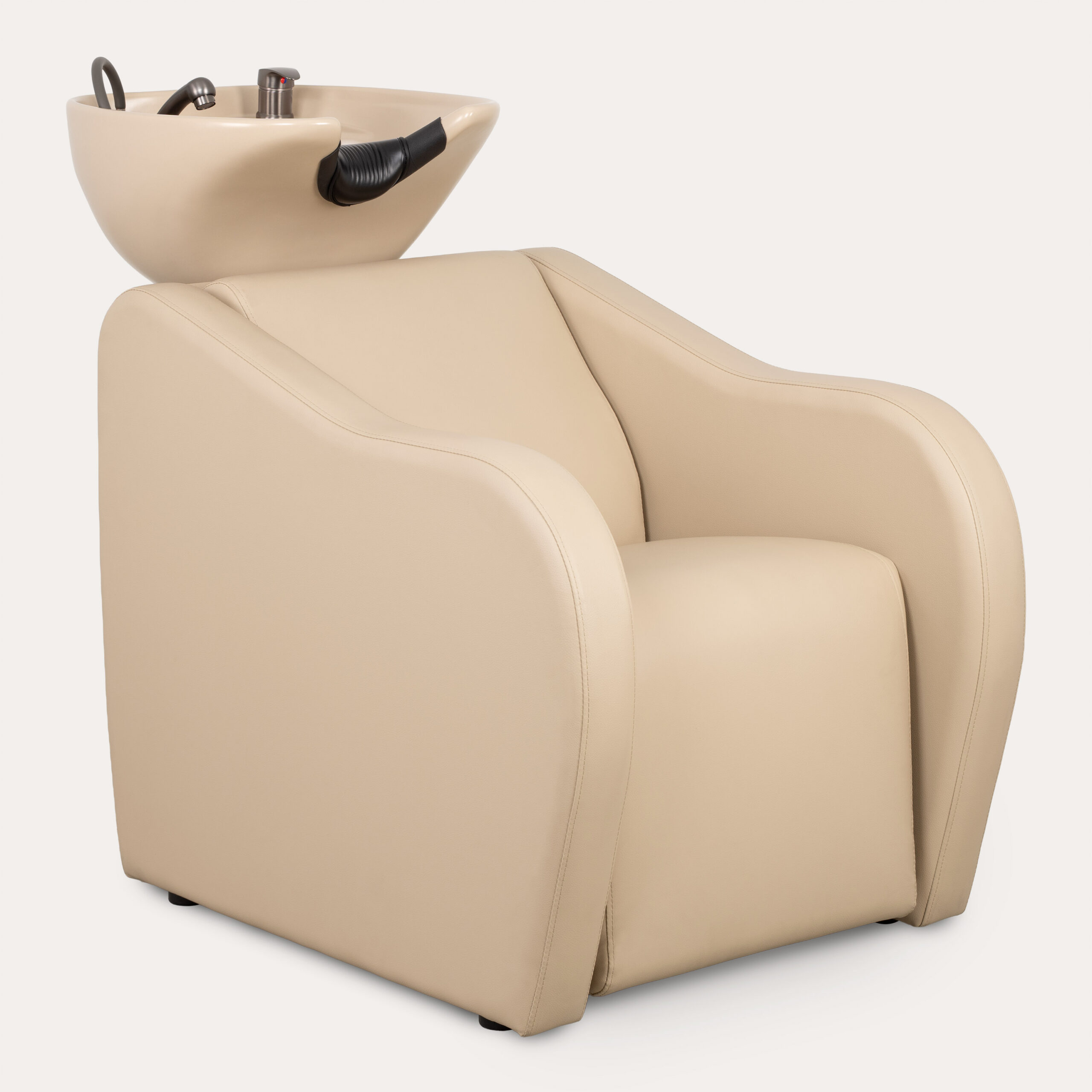 Geef jouw salon een luxe uitstraling met deze volledig beige wasunit en wasbak én stoel in perfecte kleurmatch. Deze Velaris Air wasunit combineert stijl met functionaliteit: de unit is in hoogte verstelbaar en de krachtige rugmassage reikt door tot de benen voor optimaal ontspanningscomfort.