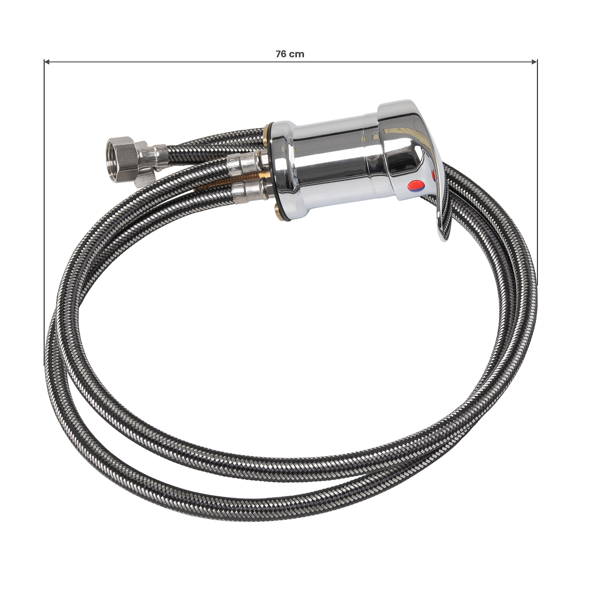 Die Wasserfall-Mischbatterie für Friseurwaschmaschinen ist ein unverzichtbarer Bestandteil der professionellen Salonausstattung. Sie erleichtert den Anschluss des Wassers an die Waschmaschine und bietet sowohl dem Friseur als auch dem Kunden Komfort. Dank der mitgelieferten stahlgeflochtenen Anschlussschläuche zeichnet sich die Armatur durch hohe Haltbarkeit und Verschleißfestigkeit aus.
