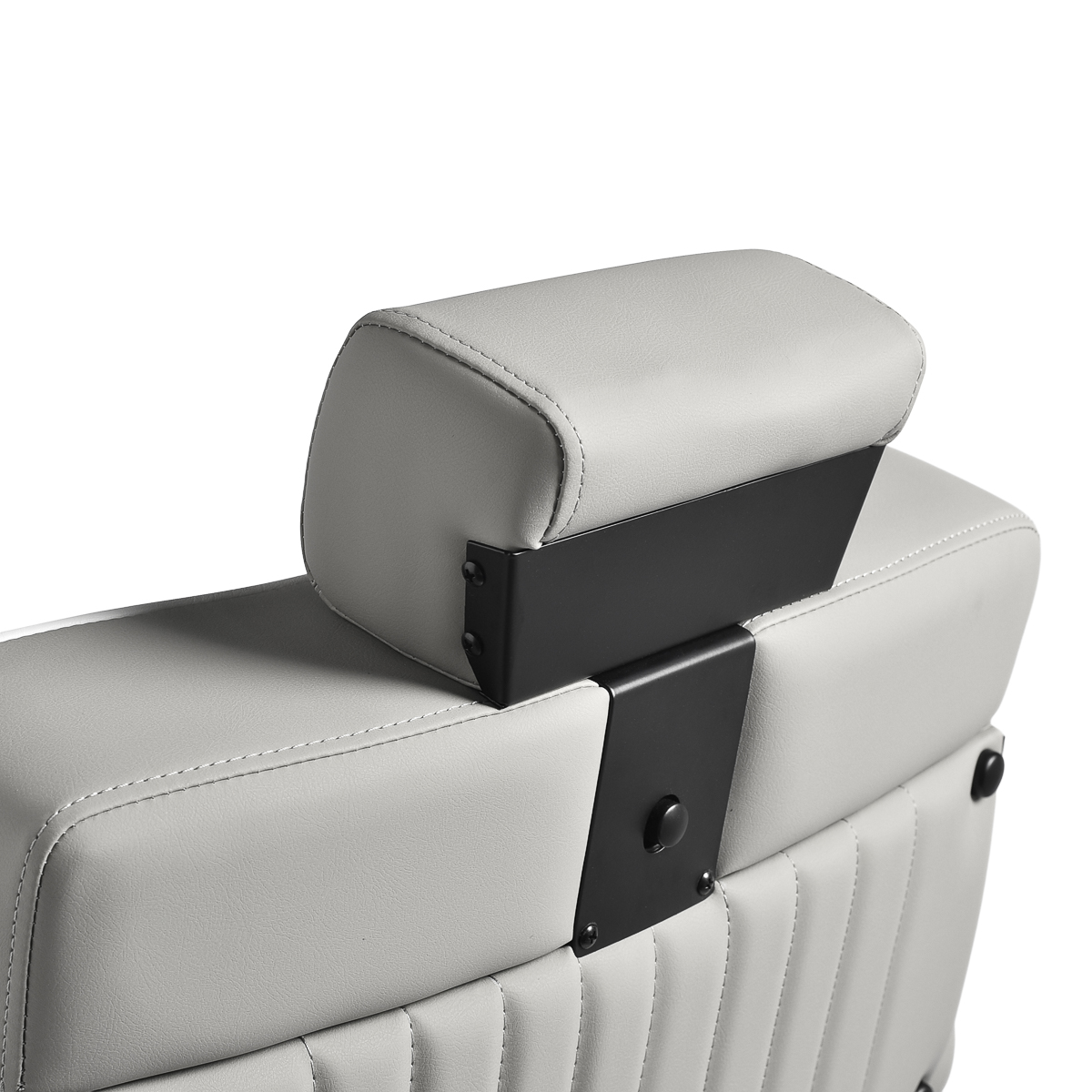 De zachte, matte bekleding van synthetisch leer combineert comfort met duurzaamheid. De gebruikte materialen zijn vochtbestendig, duurzaam en gemakkelijk schoon te maken. Stijlvol stikwerk en grijstinten geven het een uniek karakter en passen perfect bij de inrichting van moderne kapperszaken.