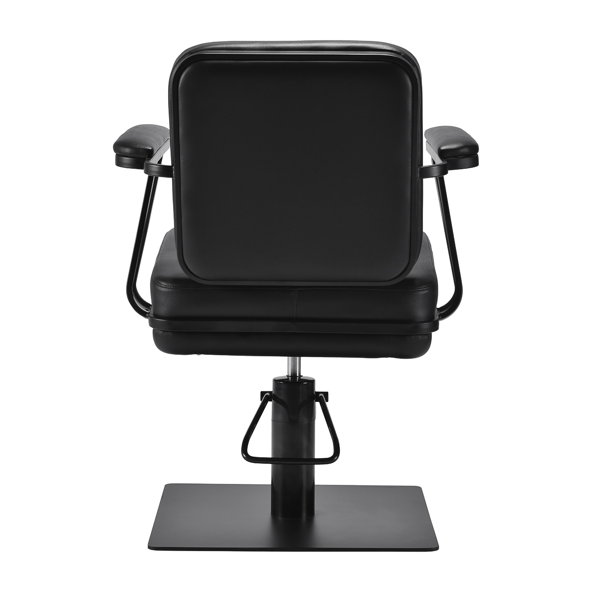 De geprofileerde stoel biedt lumbale ondersteuning en hoog comfort, terwijl de gestoffeerde armleuningen zorgen voor een correcte schouderpositie. De stabiele, vierkante voet in matzwart benadrukt de stijlvolle uitstraling en het aangenaam aanvoelende kunstleer in zwarte tinten garandeert comfort tijdens lange behandelingen, duurzaamheid, vochtbestendigheid en eenvoudige reiniging. Het moderne ontwerp geeft het interieur een uniek karakter en de stoel past zowel in moderne als klassieke interieurs, waardoor de professionele uitstraling van de salon wordt benadrukt. De afmetingen staan op de foto. De set bestaat uit: zitting, actuator met voet. Specificaties: Lift: hydraulisch Voet: vierkant Bekleding: synthetisch leer Kleur bekleding: verschillende tinten zwart Kleur voet: verschillende tinten zwart