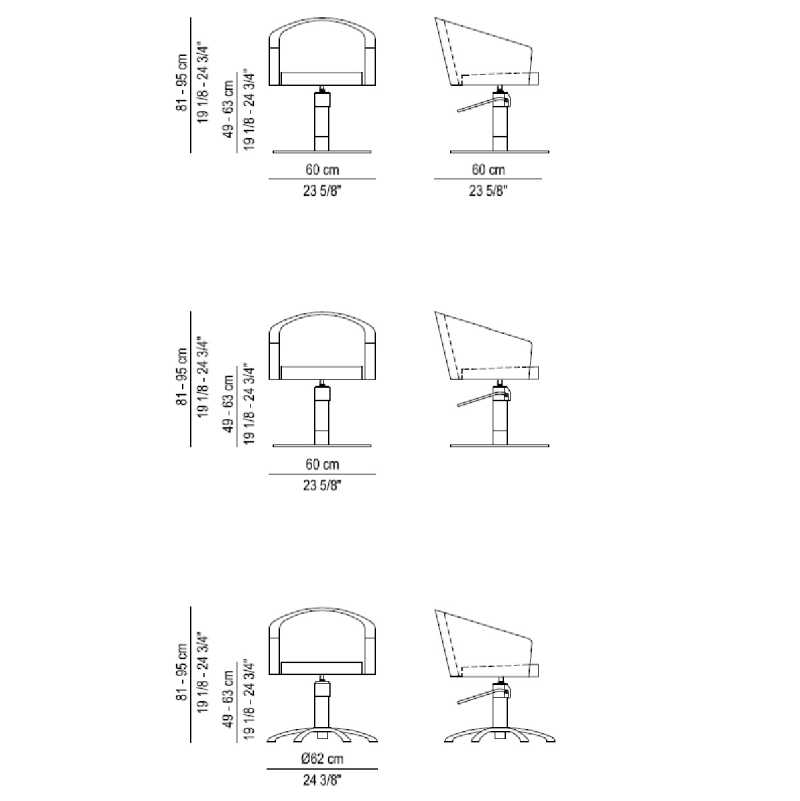 Kappersstoel gemaakt van geïnjecteerd schuim, gemonteerd op een aluminium stervoet met een 360° draaibare en vergrendelbare hydraulische pomp. De rugleuning heeft een gleuf voor eenvoudige reiniging.