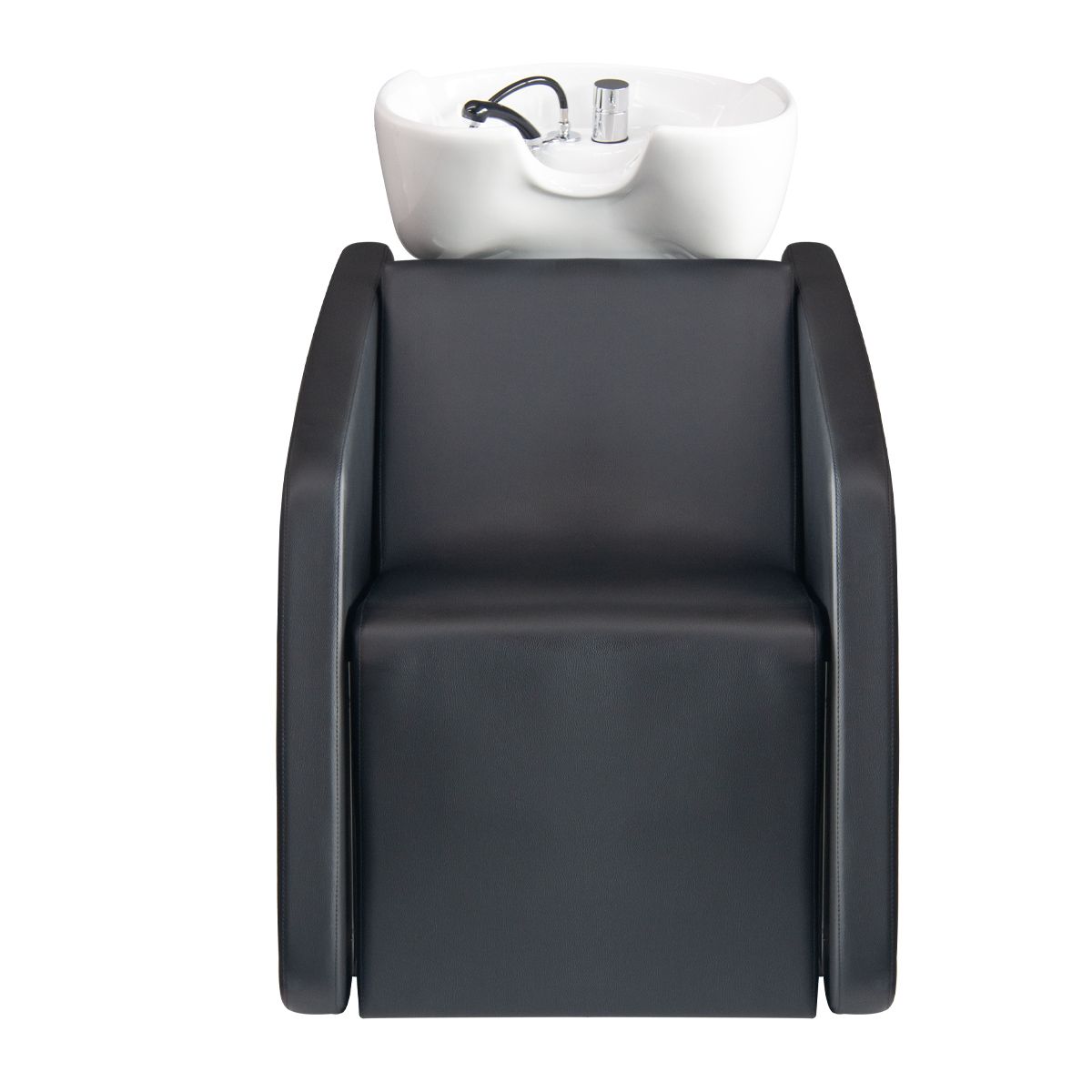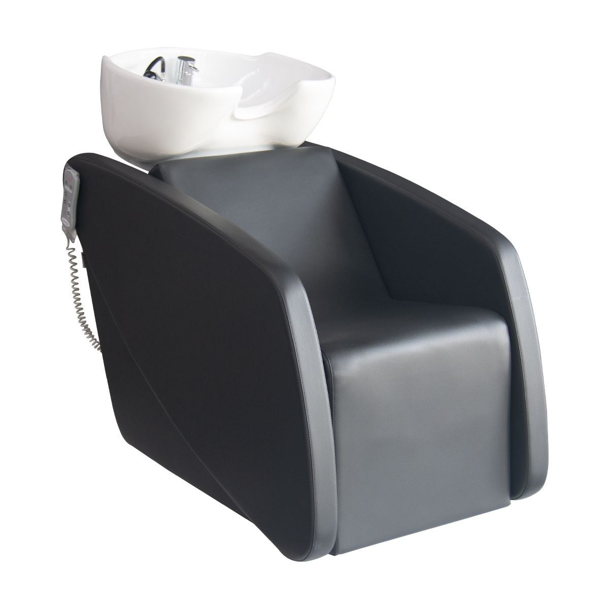 Luxe wasstoel met ergonomische kantelfunctie, wit of zwart, keramische wasbak (inclusief mengkraan en handdouche), matras met afstandsbediening voor het verstellen van de rugleuning, zitting en beensteun voor een volledig liggende positie. Optioneel verkrijgbaar met shiatsu, lucht en massage. Neerklapbare rugleuning voor gemakkelijke toegang tot de elektrische componenten. Aansluiting voor de leidingen aan de zijkant op aanvraag.