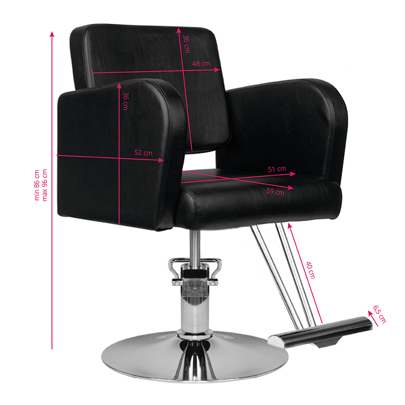 moderne Hair Systemstoel per Hair System. elegant en zeer comfortabel. een solide, verchroomde voet garandeert de stabiliteit van de stoel. bekleding gemaakt van hoogwaardig zwart eco-leer. de stoel is omhoog en omlaag verstelbaar.