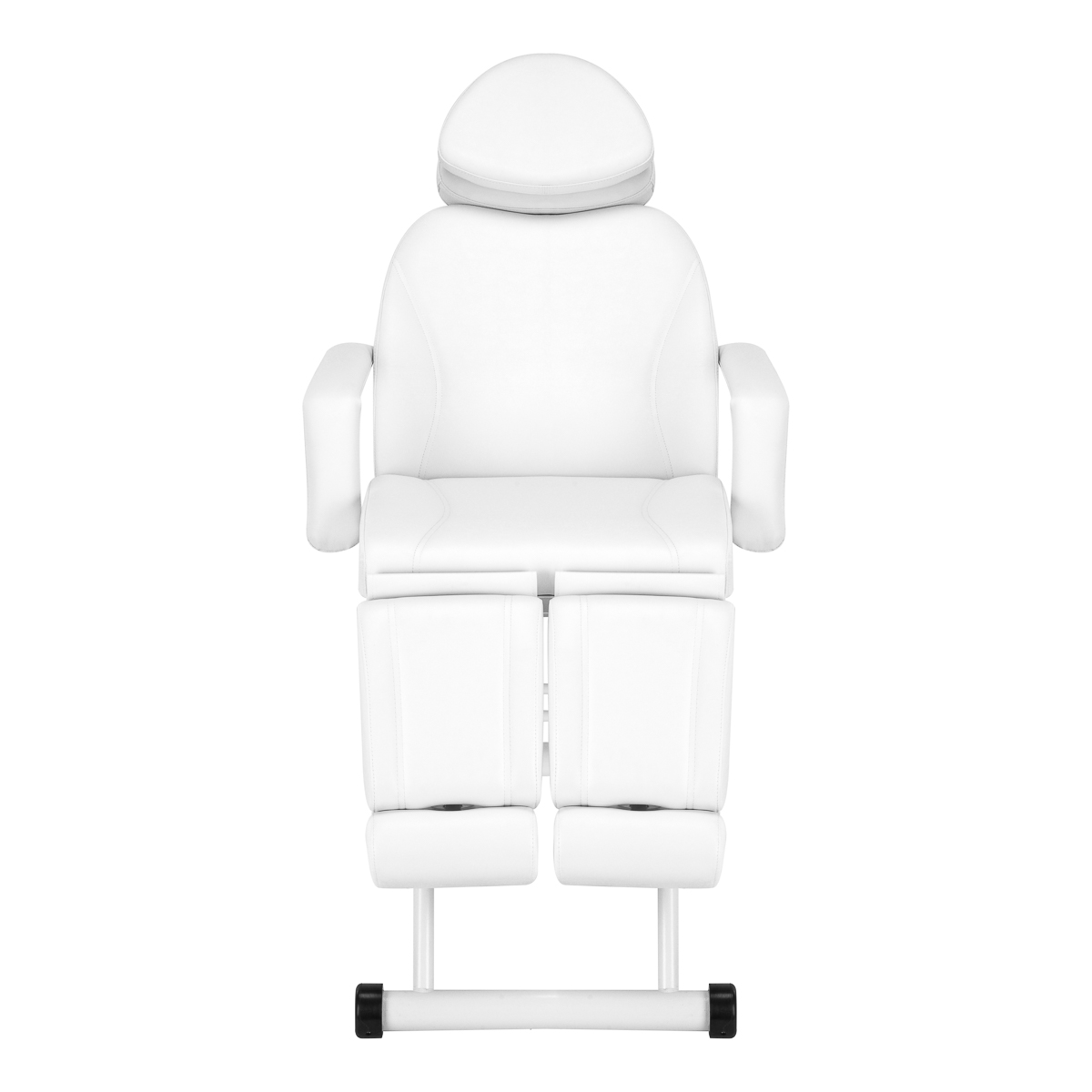 De opening in de hoofdsteun verborgen onder een goed geprofileerd kussen maakt de stoel perfect voor zowel gezichts- als lichaamsbehandelingen. Stabiele armleuningen garanderen de gebruiker voldoende ondersteuning. Deze in tweeën gedeelde elementen zijn verplaatsbaar, waardoor ze goed passen bij het veranderen van de positie van de rugleuning en bovendien gemakkelijk verwijderd kunnen worden, waardoor je gemakkelijk kunt plaatsnemen.