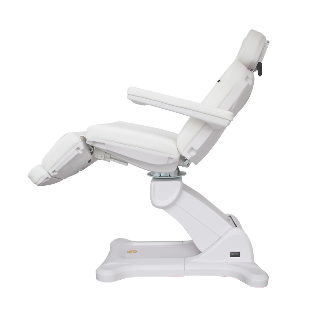 Fauteuil de traitement de haute qualité, de construction très stable, spécialement conçu pour optimiser l'espace de travail grâce à l'assise pivotante à 240°. Le fauteuil est équipé de 4 moteurs pour le réglage de la hauteur, du dossier et de l'assise. Le repose-pieds est réglable par vérin à gaz et les accoudoirs sont rabattables.