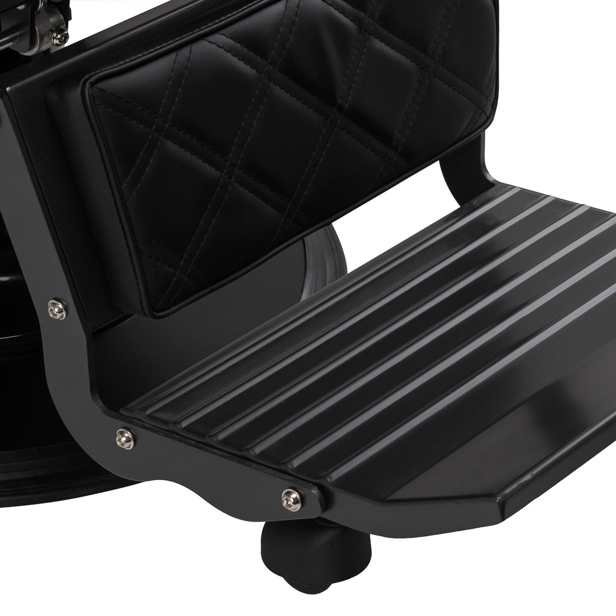 Construction solide assure la stabilité et un grand confort d'utilisation. L'assise est remplie de mousse résistante à la déformation et le revêtement en similicuir souple et mat confère au meuble durabilité et confort. Les matériaux résistants à l'humidité sont non seulement durables mais aussi faciles à nettoyer.. De zwarte tint van de bekleding geeft de stoel een nature unique et son style élégant s'intègre parfaitement à l'intérieur de tout salon de coiffure.