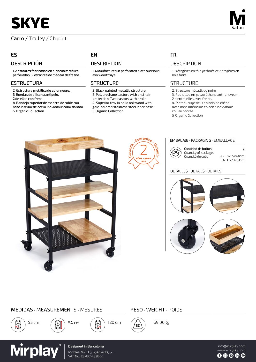 Mirplay Chariot de travail Skye