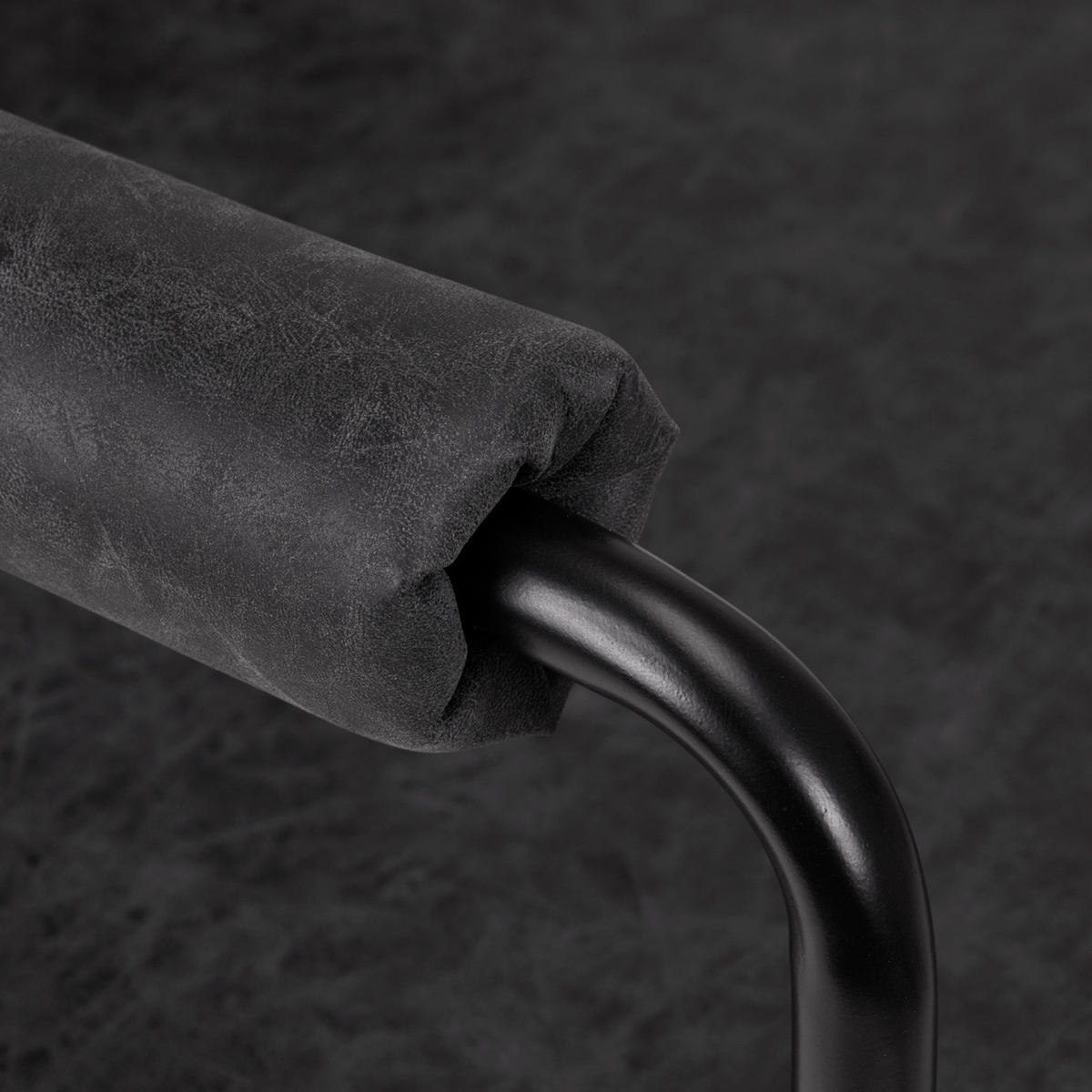 Meubelstuk in loftstijl is gevuld met duurzaam, vervormingsbestendig schuim en de bekleding is gemaakt van aangenaam aanvoelend synthetisch leer in zwarttinten. De gebruikte materialen zorgen voor comfortabel gebruik van het meubilair gedurende lange tijd en maken de apparatuur bestand tegen vocht, duurzaam en gemakkelijk schoon te maken. Metalen elementen in zwarttinten geven het een uitdrukking van rauwe elegantie. De moderne Gabbiano Katania Loft kappersstoel onderscheidt zich door een minimalistisch design, wat hem een uniek karakter geeft en waardoor de stoel in veel kapsalons prachtig tot zijn recht komt.